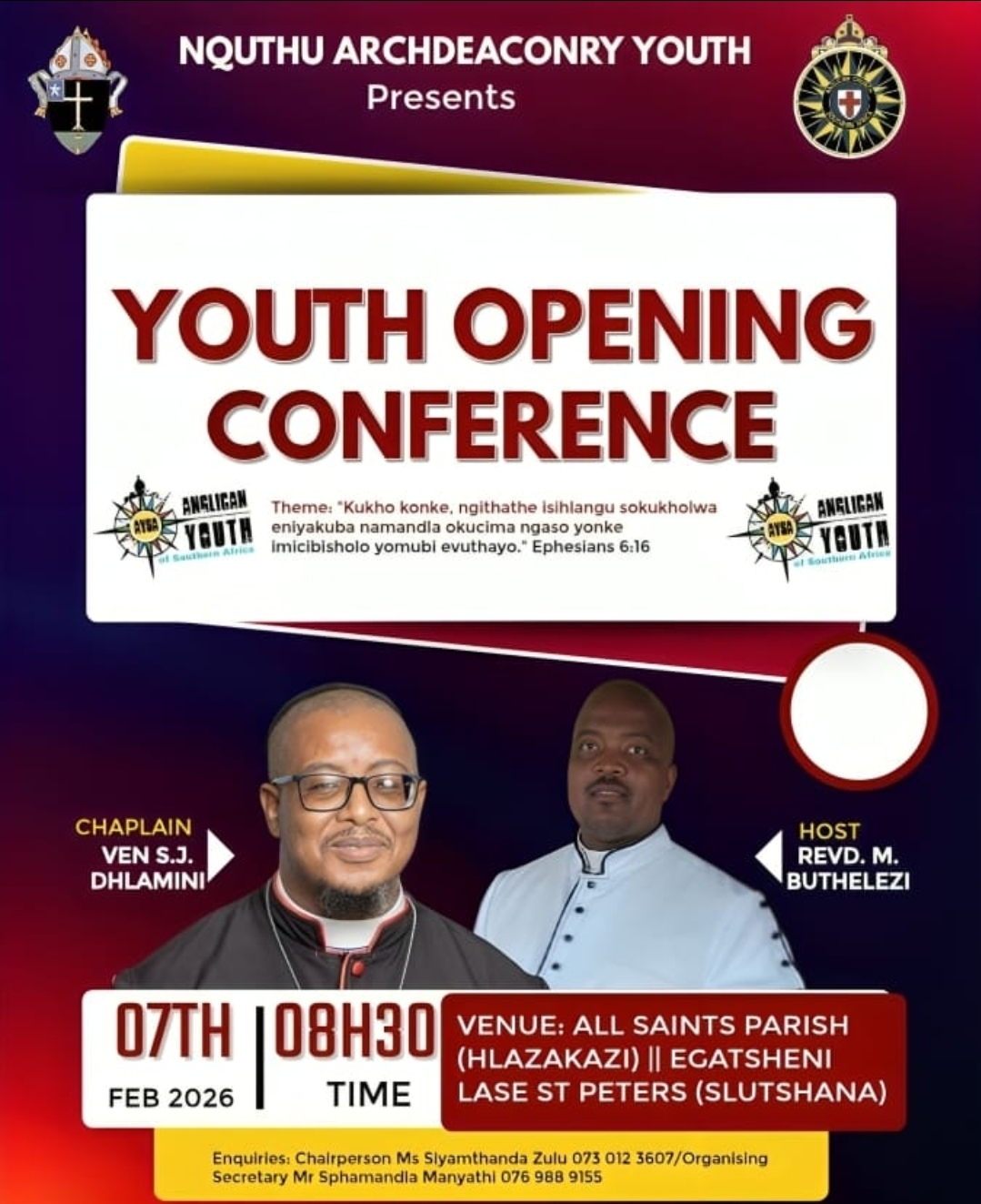 Invitation to opening service of Nquthu archdeaconry Youth Ministry